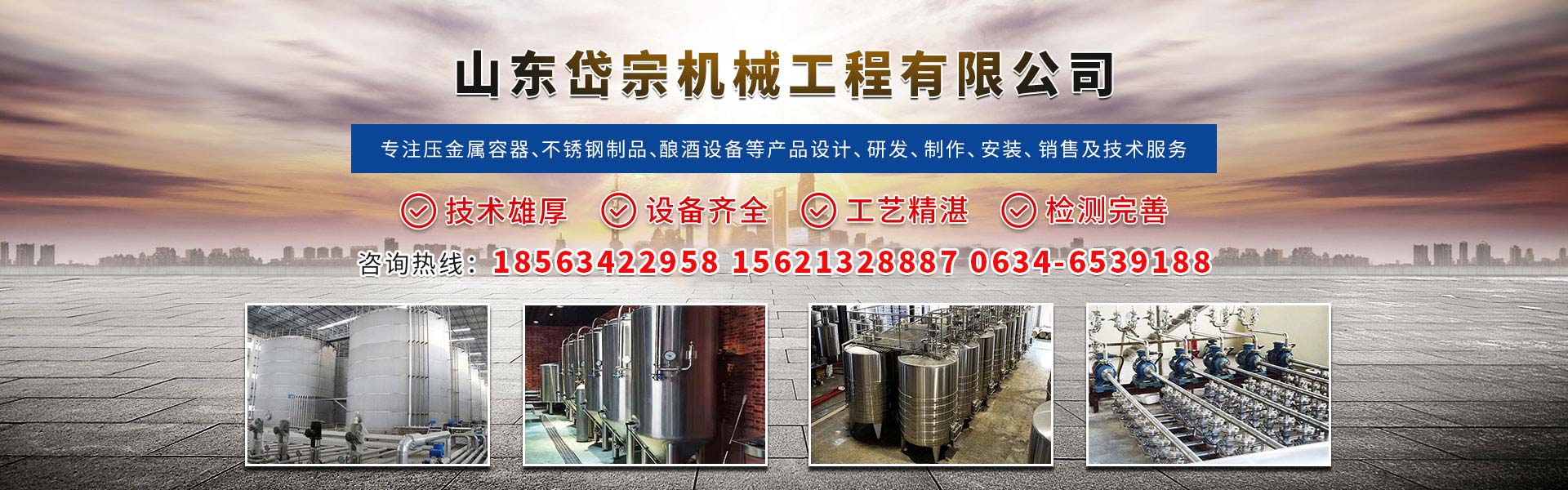 山東岱宗機械工程有限公司位于濟南市萊蕪農高區,是一家科技發展型機械制造企業。公司集科研開發、生產制造、安裝調試和培訓為一體,從事常壓金屬容器、不銹鋼制品、釀酒設備、液態食品機械、生物發酵設備、調味品設備、化工機械、制藥機械、造紙設備、阻隔防爆撬裝加油站裝置、油罐、鍋爐及配套設備、熱交換設備、節能設備、耐火材料、環保設備、農機設備的設計、研發、制作、安裝、銷售及技術服務;建筑安裝工程、環保工程、管道工程施工...